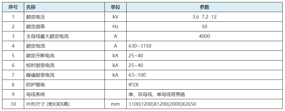 该系列产品适用于额定电压为3.6—12kV、50Hz, 额定电流630A—3150A三相交流单母线、双母线、单母线带旁路系统,作为接受和分配电能之用。可满足各种类型发电厂、变电站(所)及工矿企业的使用要求。