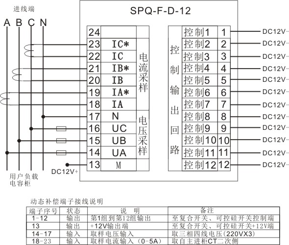 接线方式: SPQ-E:BC相电压,A相电流;SPQ-F:三相四线