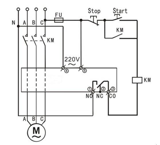 通过内置的电流互感器检测负载电流,所以被保护电机的三根相线必须分别穿过电流互感器的三个小孔。
