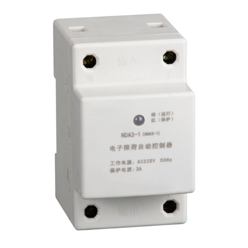 NDA3-1 (HHA3-1)系列电子限荷自动控制器 (以下简称控制器)适用于交流50Hz,工作电压 AC220V的控制电路中,按额定用电功率供电。当用电负荷超过规定的范围值时,控制器自 动切断负载电源,实现自动控制。运用控制 的场合主要为工矿、企业员工宿舍、建筑工 地民工宿舍中,控制员工、工人的违规用电 达到安全用电的目的。产品结构紧凑,外形 美观,与DZ47 (C45)并轨安装。