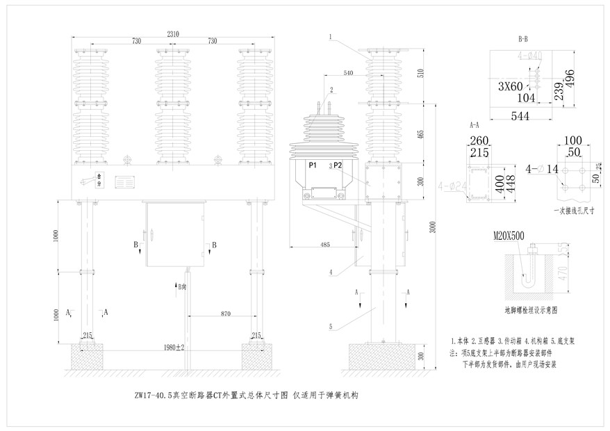 4.采用CT19W-I型弹簧机构,操作功小、机构寿命长;