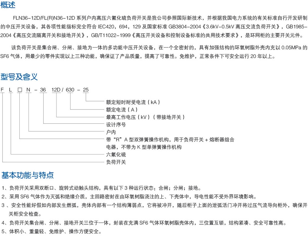 FLN36-12D/FLRN36-12D户内高压六氟化硫负荷开关