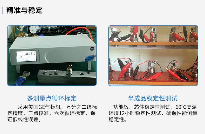 扩散硅压力变送器选用进口高精度、高稳定性压力 敏感芯片。敏感芯片采用先进的微机械刻蚀加工工艺, 通过在硅片上扩散四个高精度电阻,从而形成惠斯通电 桥。由于压阻效应,四个桥臂电阻的阻值发生变化,电 桥失衡,敏感元件输出一个对应压力变化的电信号。输 出的电信号通过 24 位 AD 数字芯片的放大和非线性矫正 的补偿,产生与输入压力成线性对应关系的电压、电流 信号。