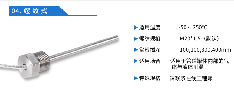 安装方式:螺纹、压鼻、贴片、卡箍等