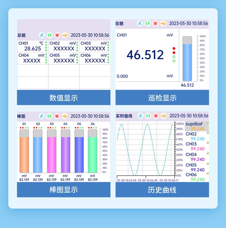 本产品为工业无纸记录仪,配置 3.5 英寸 TFT 真彩全视角液晶显示屏。可以接入多种类型的电流、电压、热电偶和热电阻等工业标准信号,实现温度、湿度、压力、液位、流量的显示、记录、超限监控、报表、数据通讯、信号变送以及流量累积、流量温压补偿等功能。可应用在冶金、石油、化工、建材、造纸、电力、食品、制药、工业水处理等各个行业。