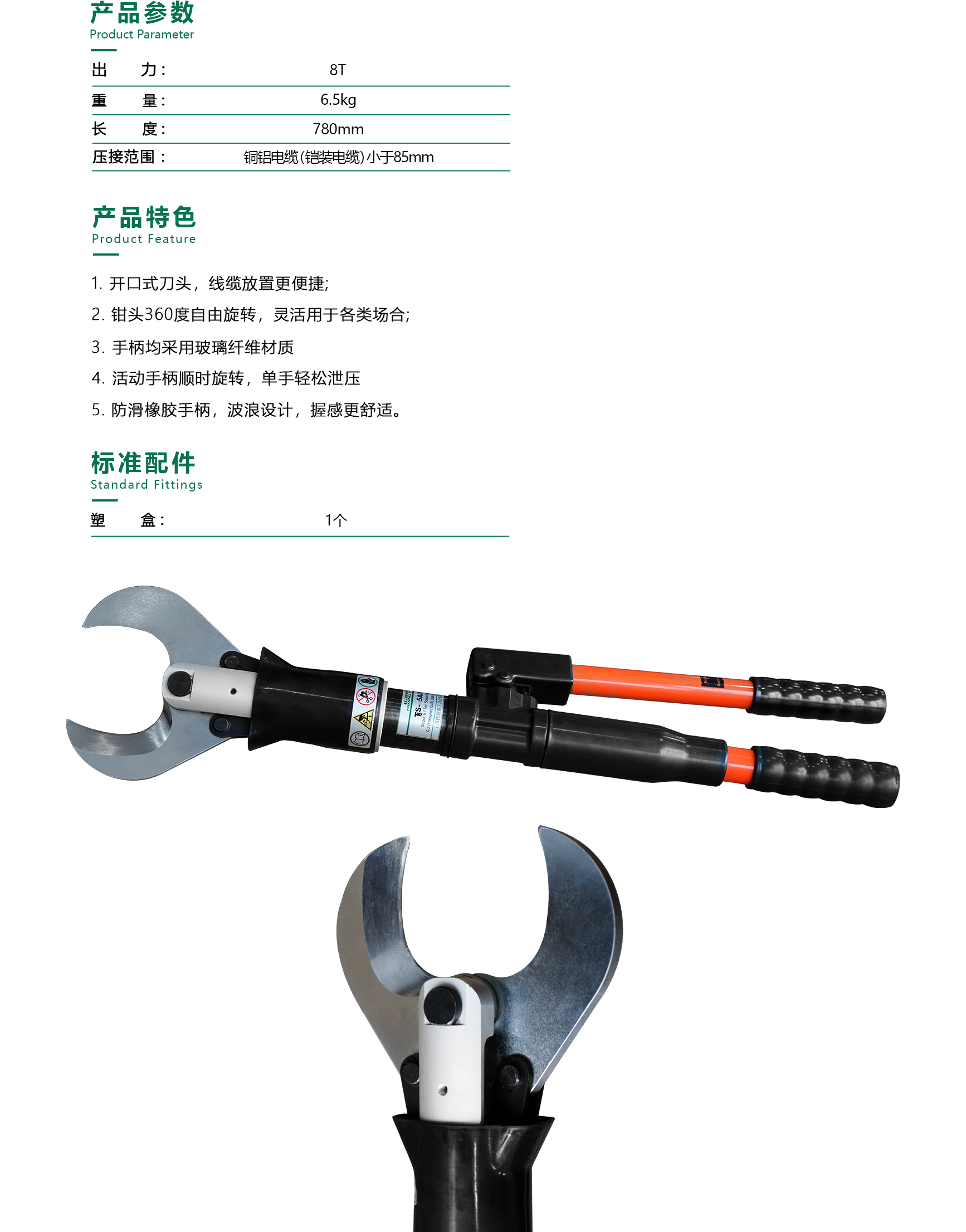 产品均为手动式液压剪刀,可用于剪切铜铝电缆。